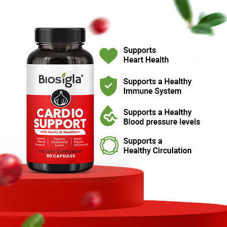 Cardio Support is a unique blend of potent plant extracts that work together to support healthy blood pressure and reduce stress in a natural way, without any side effects. Your heart health and circulation will be improved and all nutrients and oxygen will be transported properly to various parts of your body including the brain, muscles and skin. Leading an active lifestyle and taking care of your heart health, will improve your quality of life significantly. Be your best self!