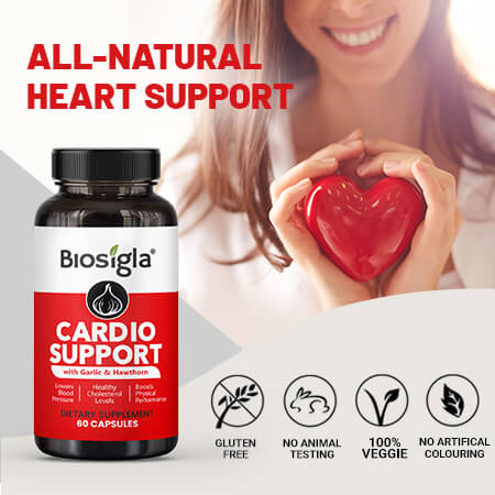 Cardio Support is a unique blend of potent plant extracts that work together to support healthy blood pressure and reduce stress in a natural way, without any side effects. Your heart health and circulation will be improved and all nutrients and oxygen will be transported properly to various parts of your body including the brain, muscles and skin. Leading an active lifestyle and taking care of your heart health, will improve your quality of life significantly. Be your best self!